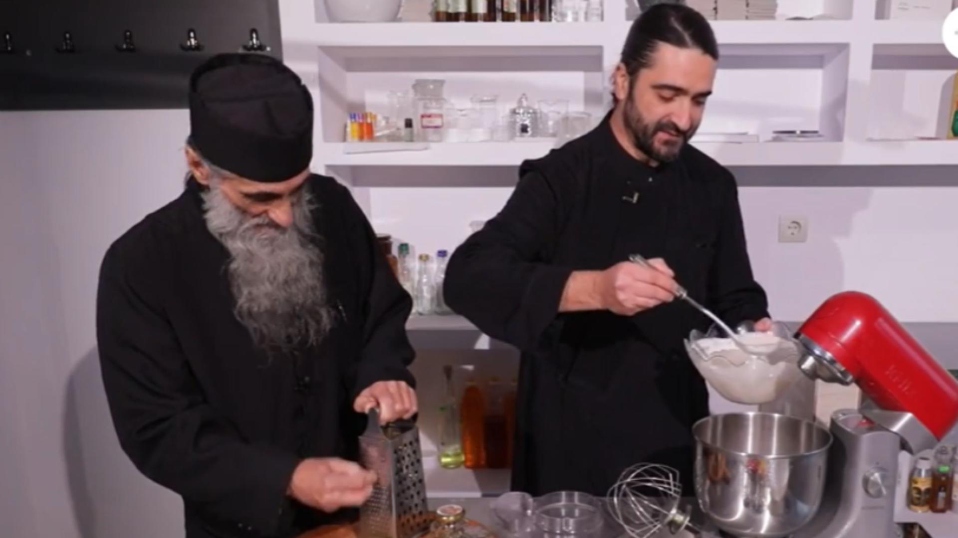 „Trebuie o smântână grasă, Cu cât este mai grasă, cu atât vom avea un unt mai de calitate. Smântâna trebuie să fie cât mai rece, de la frigider. Dacă este mai caldă se leagă mai greu”, explică călugărul – bucătar.