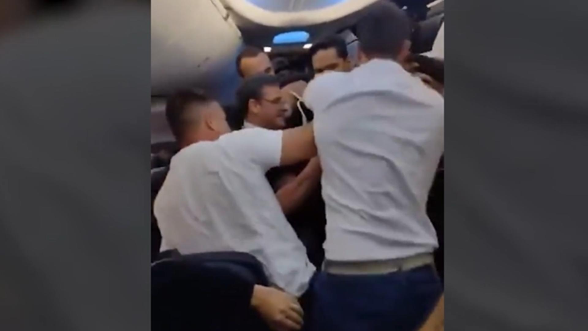 Bărbatul s-a ales cu un avertisment, însă, nu s-a calmat. A încercat chiar să tragă de ușa avionului. Acela a fost și momentul în care ceilalți participanți la zbor, dar și echipajul l-au luat la bătaie, iar bărbatul și-a pierdut cunoștința.