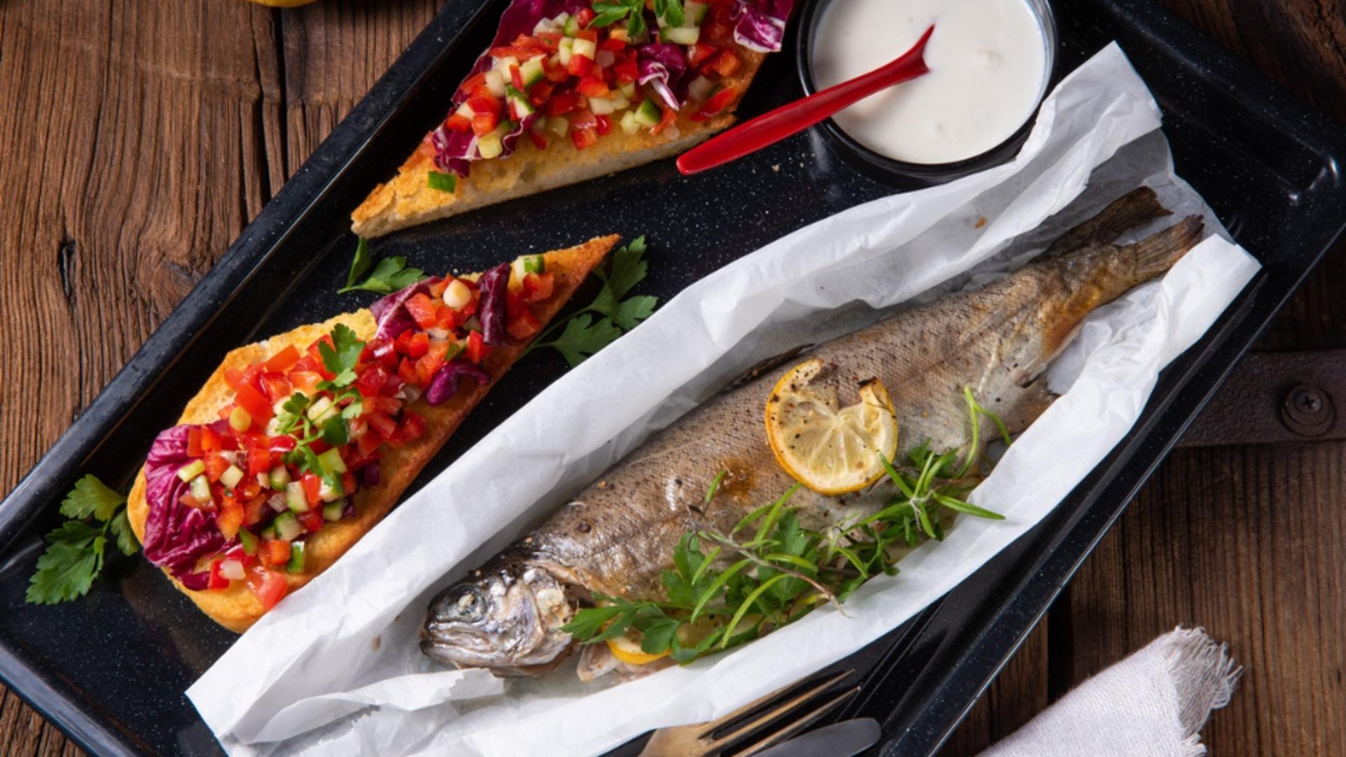 Descoperă mai jos rețeta de păstrăv umplut cu ierburi și lămâie, detaliată pas cu pas.